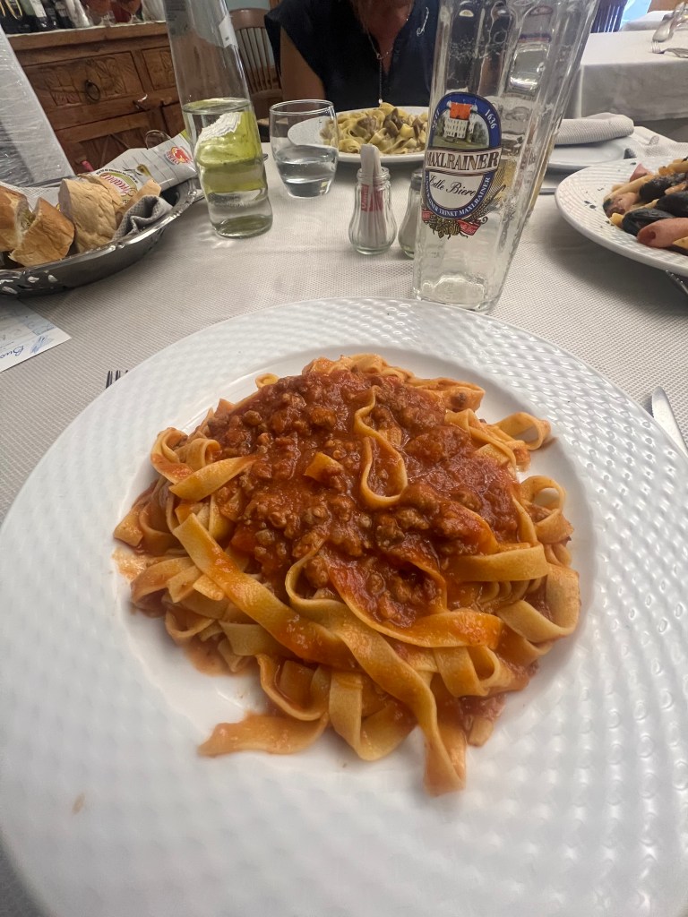 I checked into my accommodation around 3 PM and was pleasantly surprised to find the same group I walked with yesterday staying in the same place. That evening, we enjoyed a classic Italian dinner — beer, pasta, and lively conversation. A great way to end a long day.