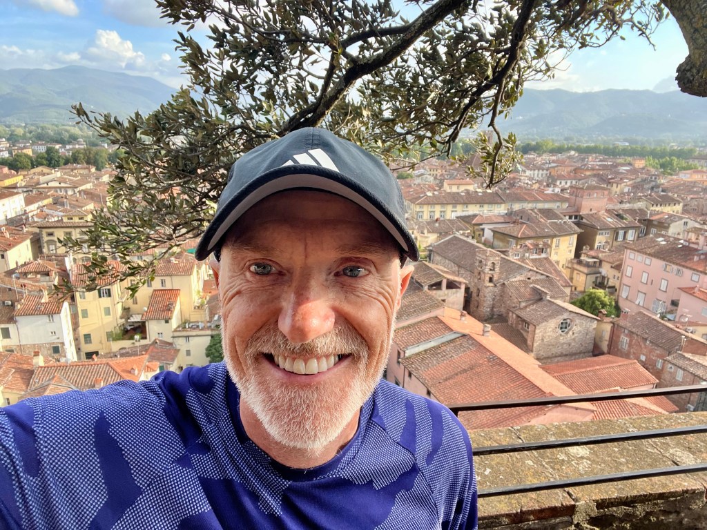 At 9:40 AM, I crested the last mountain, and looking back at the peaks I’d just conquered was surreal. Now, I’m heading downhill toward Lucca, surrounded by rolling hills. The mountains are behind me, and it feels like a chapter has closed. I reached Lucca at 12:30, just as the temperature hit 93°F!