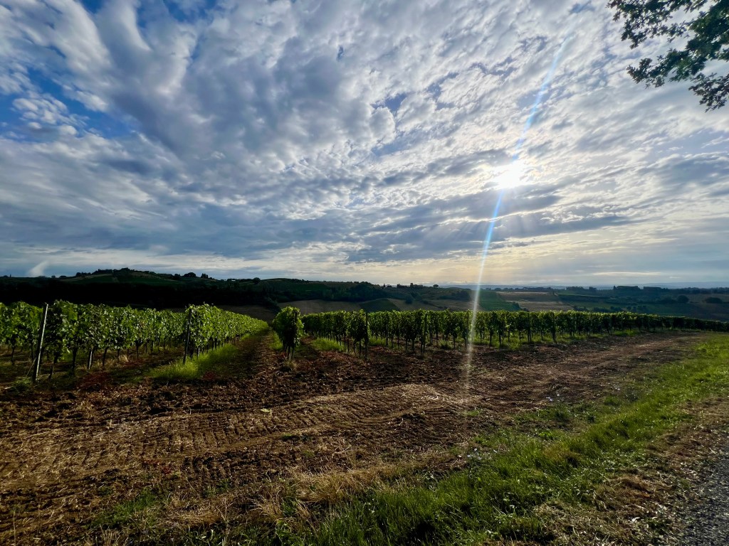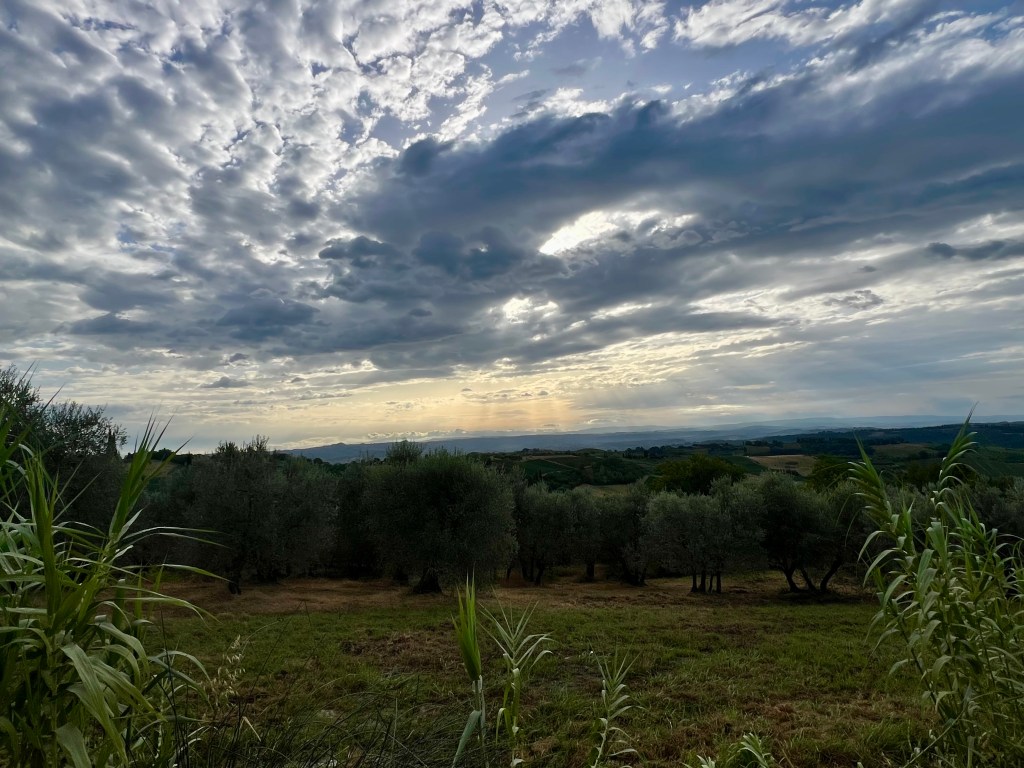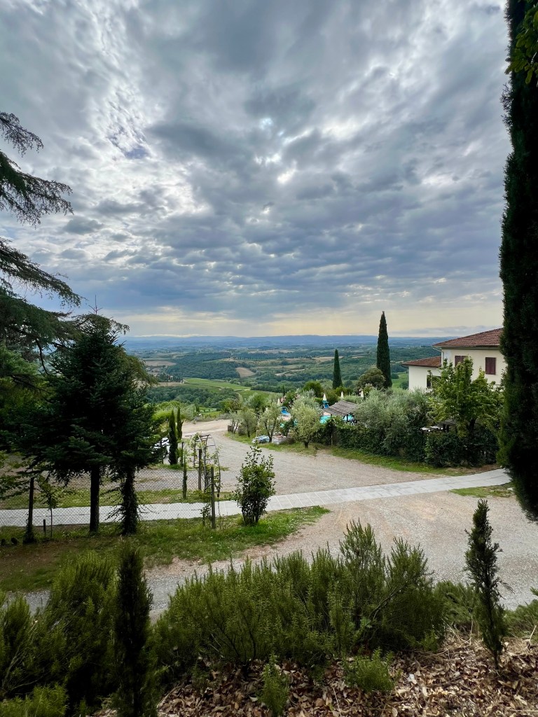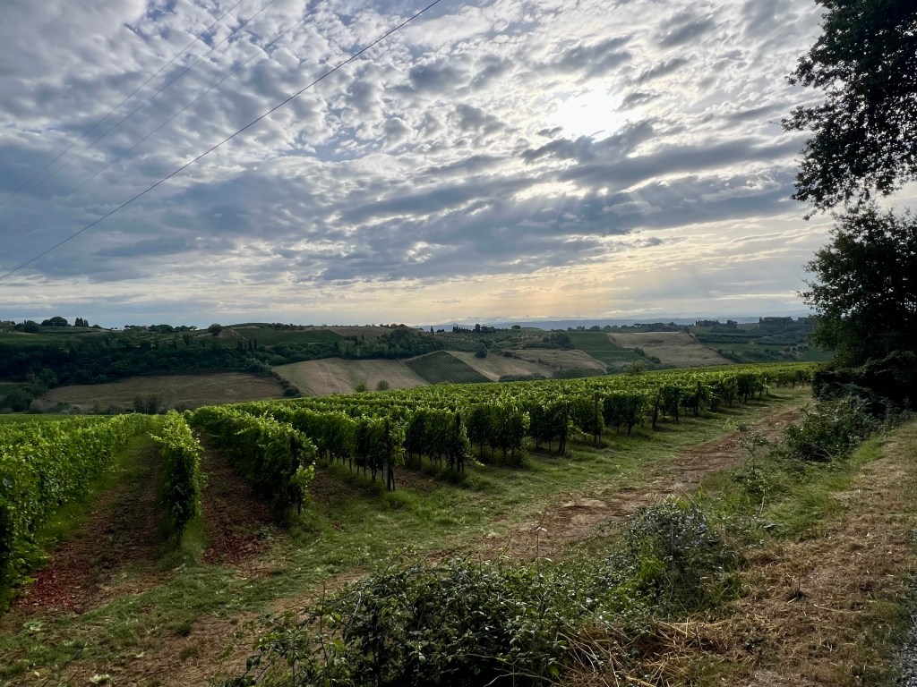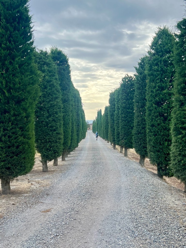 The morning hike was stunning. Though the sky remained overcast, the rolling Tuscan hills, vineyards, and ancient cypress-lined roads were absolutely breathtaking. It was the kind of walk that lifts your spirits, especially after last night’s anxiety.