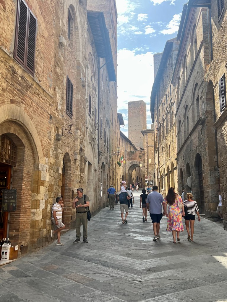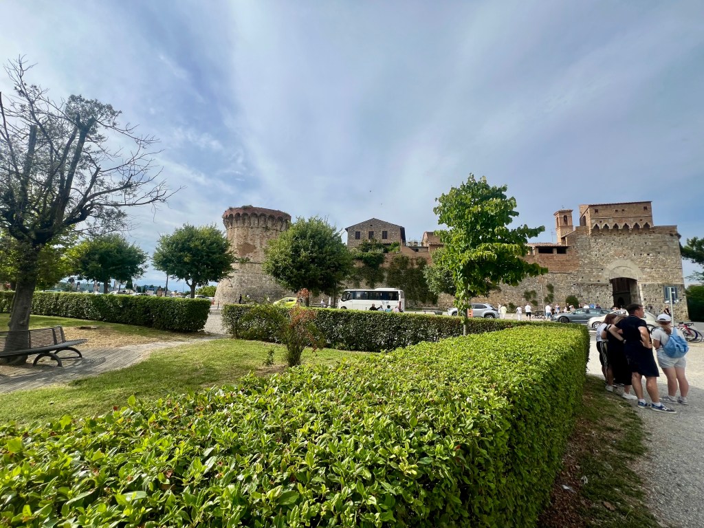 Since today’s stage was relatively short, we arrived in San Gimignano around 11 a.m. Approaching San Gimignano, the sight of its towers rising in the distance is truly iconic.