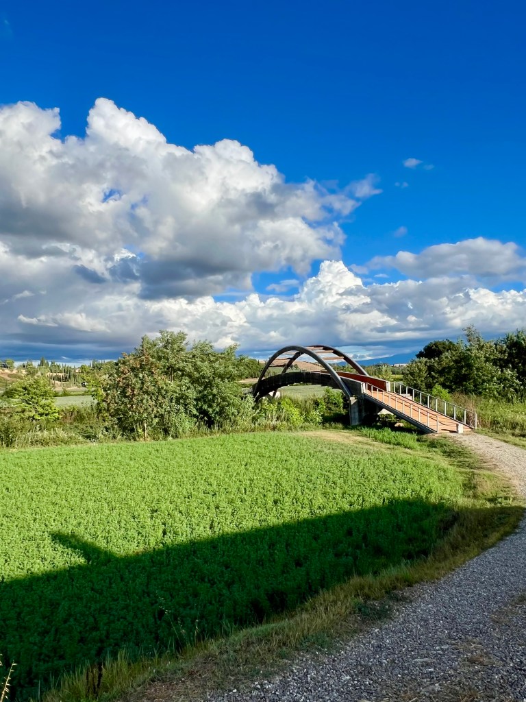 Ponte d’Arbia is a small village with medieval roots, once an important river crossing on the Via Francigena. The name literally means “Bridge over the Arbia,” and the crossing point dates back to Roman times. Pilgrims have been passing through here for centuries, making it a modest but meaningful part of the journey south. The town itself is tiny, but there’s a comforting simplicity in its quiet streets and the knowledge that you’re walking in the footsteps of thousands who came before.