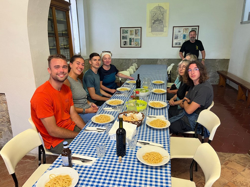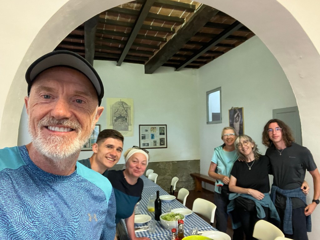 Dinner was a communal affair—big plates of pasta, local wine, and stories from the trail. Laughter came easily. It’s nights like these that remind you why you do something like the Via Francigena. Not just for the scenery or the history, but for the camaraderie. For the shared purpose. For the wine, too—let’s be honest. We have a new crew to push on to Rome!