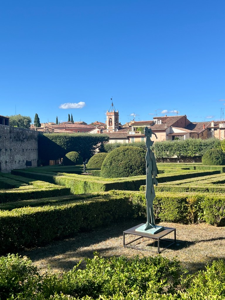 I arrived in San Quirico d’Orcia around noon. The town is small but rich in beauty and history. It’s perched on a hill and features cobbled streets, Romanesque churches, and manicured Renaissance gardens. The Horti Leonini, a 16th-century garden at the town’s edge, offers a peaceful spot to unwind after the day’s walk.