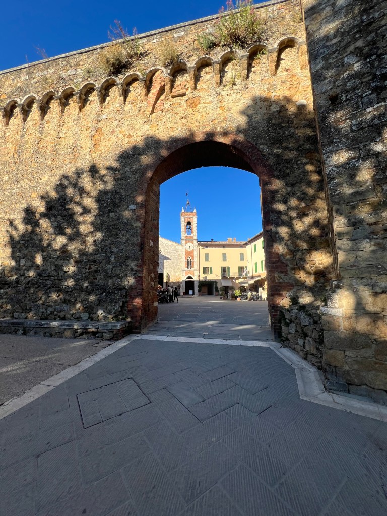 Not long into the walk, we passed through Buonconvento, a beautifully preserved medieval village. Its name means “happy place,” and it lives up to it. Surrounded by ancient brick walls, the town is filled with charming alleyways, artisan shops, and cozy cafés. We took a short walk in the town, soaking in the atmosphere. It’s one of those towns that seems untouched by time—quiet, authentic, and full of stories.