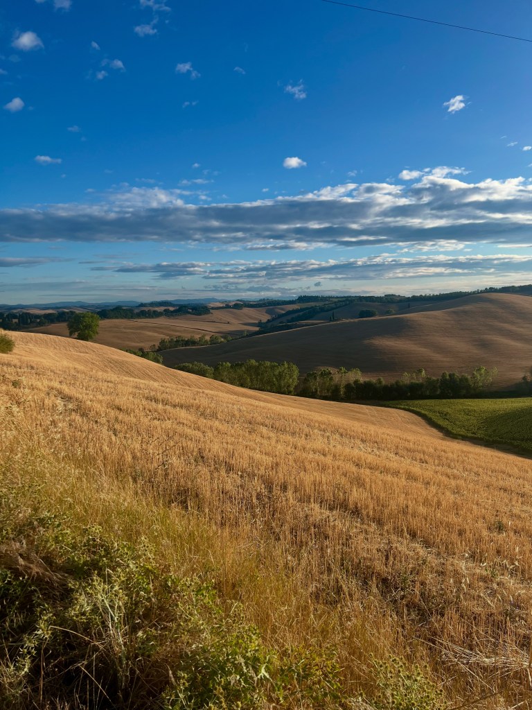 The walk from San Quirico d’Orcia to Radicofani is simply mesmerizing. The terrain shifts between rolling hills, winding roads, and olive groves, while quaint villages seem to rise straight from a Tuscan painting. Every step pulls me deeper into the heart of this stunning region.