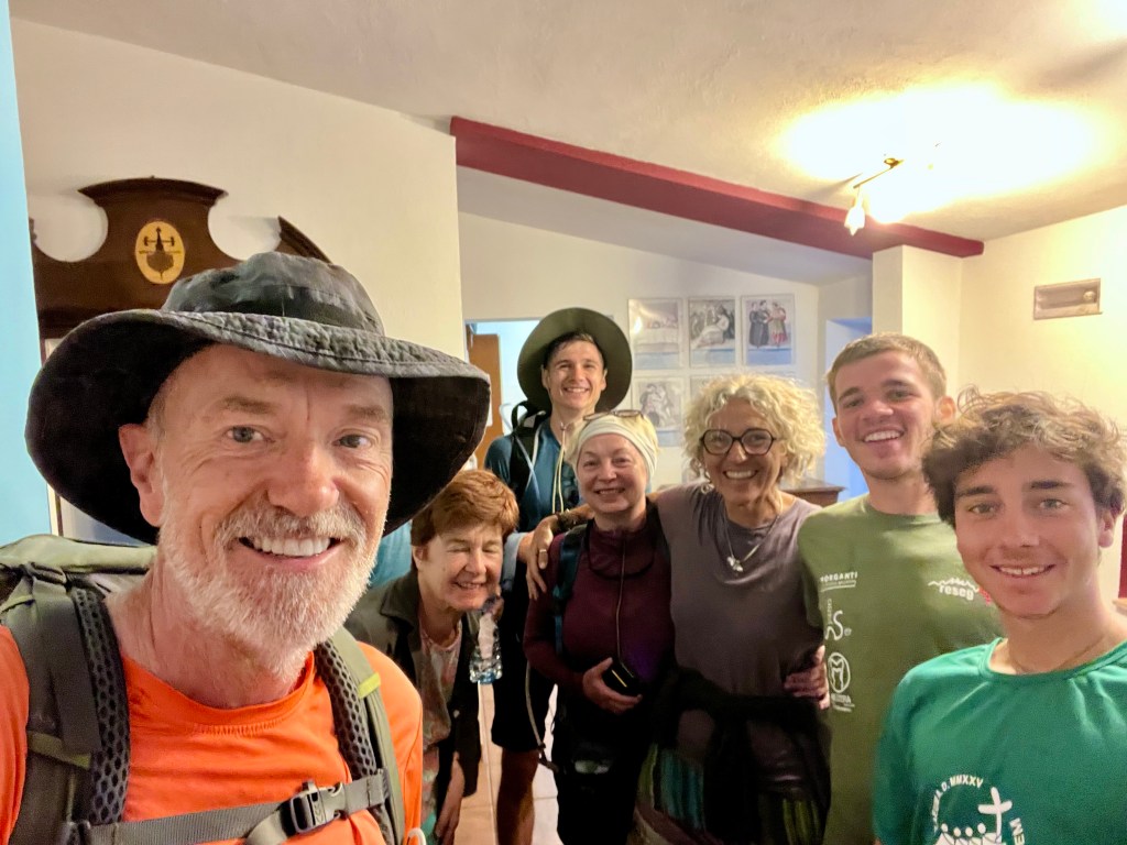 But, as is often the case on such adventures, not everything goes as planned. In the middle of the night, one of our fellow guests took a hard fall and injured their head. An emergency room visit ensued, but thankfully, after hours of waiting, they were cleared and are now recovering. It’s a relief to know they plan to continue on their way to Rome, despite the challenges ahead. Knowing the resilience of pilgrims, I have no doubt they’ll push through and make it.