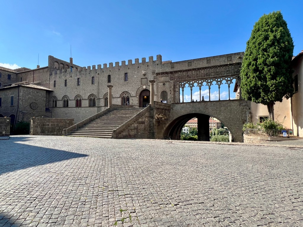 The hike from Montefiascone to Viterbo was not as impressive as the morning stretch. The trail wound through the valley mainly on tracks of gravel roads. I reached Viterbo in great time around 1:30 pm. Viterbo, known for its medieval architecture and thermal springs, welcomed me with its charming streets and historic buildings. I took some time to explore the town, visiting the impressive Palazzo dei Papi and enjoying the vibrant atmosphere.